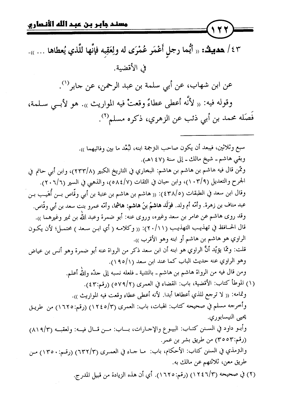 ٤٣ / حديث: "أيُّما رجلٍ أَعْمَر عُمْرَى له ولِعَقِبِه فإنَّها للَّذي يُعطاها ... ".