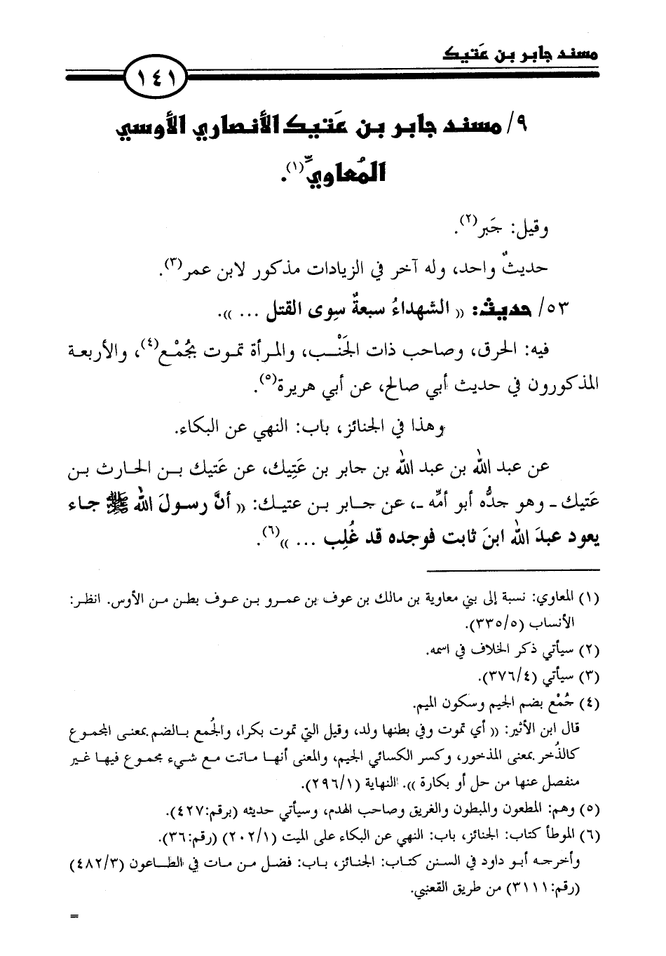 ٩/ مسند جابر بن عَتيك الأنصاري الأوسي المُعاويِّ (١).