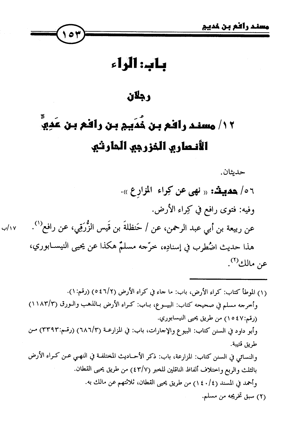 ١٢/ مسند رافع بن خُدَيج بن رافع بن عَدِيٍّ الأنصاري الخزرجي الحارثي