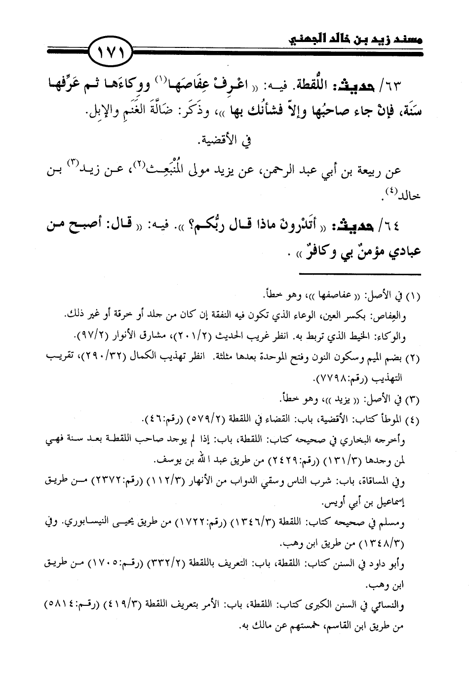 (٤) الموطأ كتاب: الأقضية، باب: القضاء في اللقطة (٢/ ٥٧٩) (رقم: ٤٦).