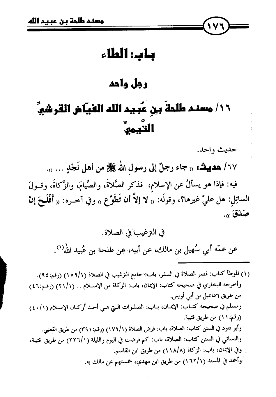 ١٦/ مسند طلحةَ بْنِ عُبيد الله الفيَّاض القرشي التَّيميِّ