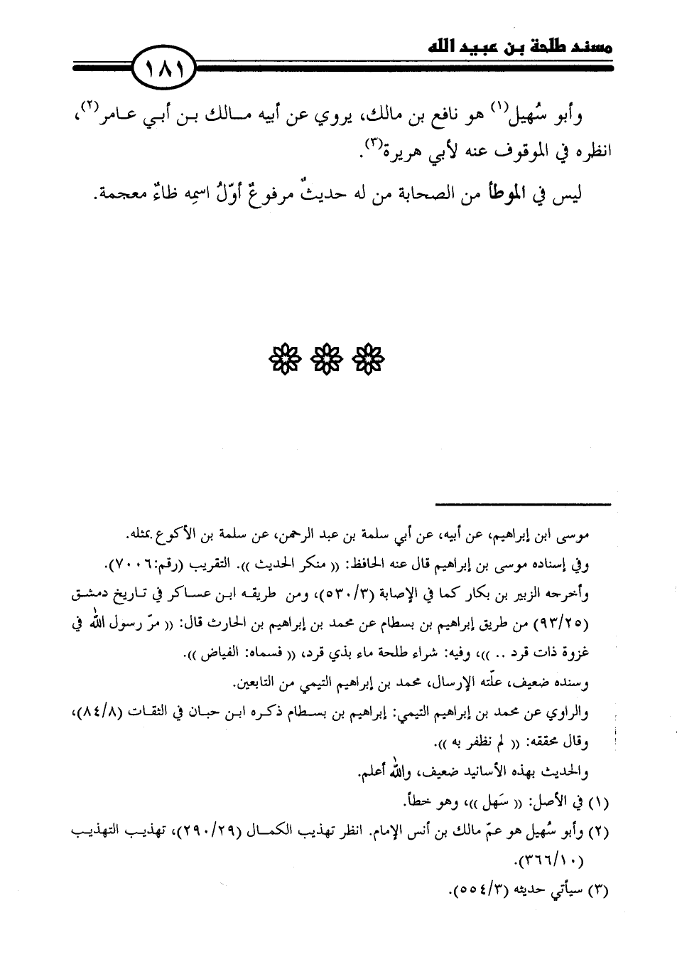 (٢) وأبو سُهيل هو عمّ مالك بن أنس الإمام. انظر تهذيب الكمال (٢٩/ ٢٩٠)، تهذيب التهذيب (١٠/ ٣٦٦).