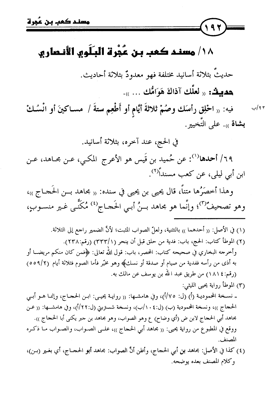 ١٨/ مسند كعب بن عُجْرة البَلَوي الأنصاري