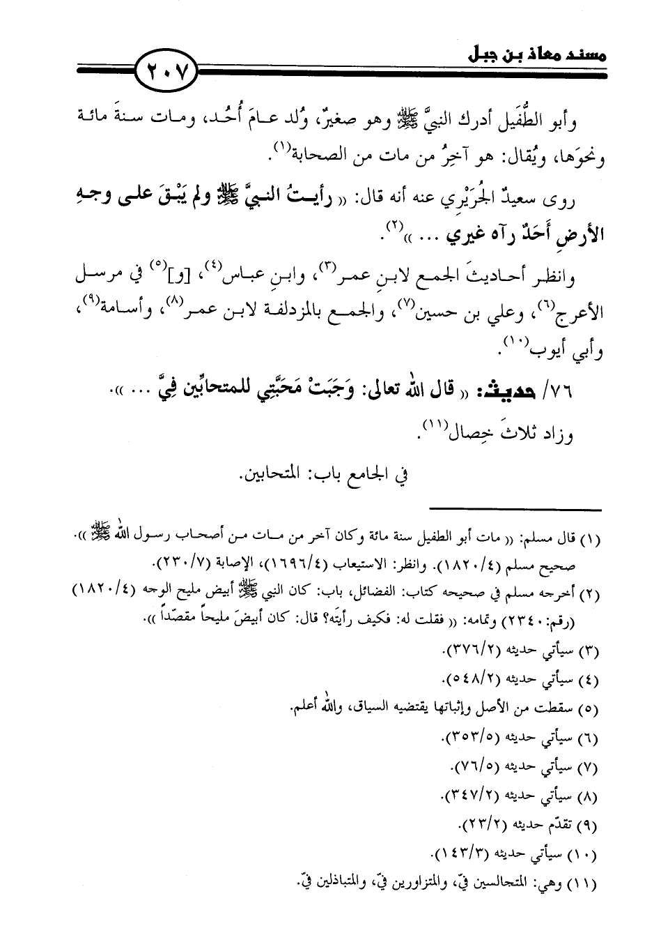وأبو الطُّفَيل أدرك النبيَّ - صلى الله عليه وسلم - وهو صغيرٌ، ولد عامَ أُحُد، ومات سنةَ مائة ونحوَها، ويُقال: هو آخِرُ من مات من الصحابة (١).