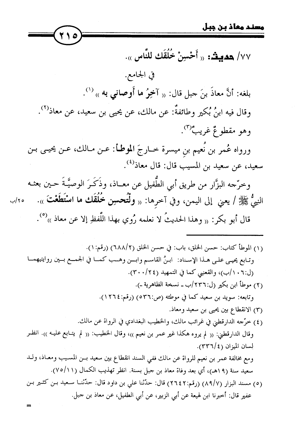 (٥) مسند البزار (٧/ ٨٩) (رقم: ٢٦٤٢) قال: حدّثنا علي بن داود قال: حدّثنا سعيد بن كثير بن عفير قال: أخبرنا ابن لهيعة عن أبي الزبير، عن أبي الطفيل، عن معاذ بن جبل. =
