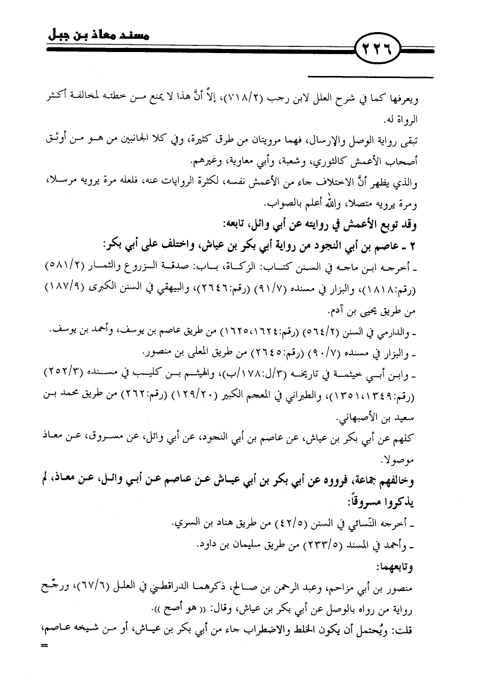 كلهم عن أبي بكر بن عياش، عن عاصم بن أبي النجود، عن أبي وائل، عن مسروق، عن معاذ موصولا.