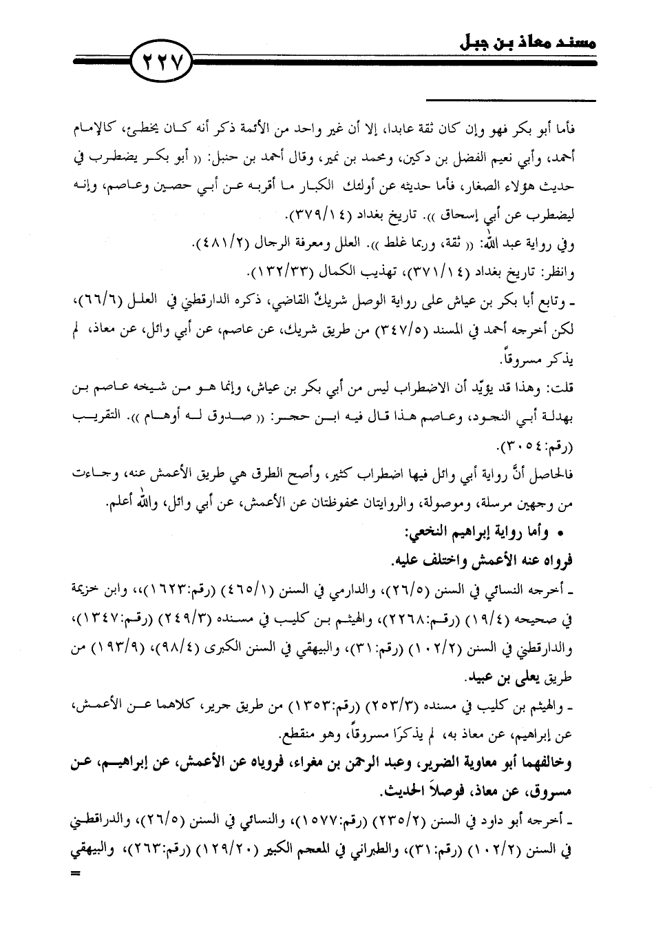 وخالفهما أبو معاوية الضرير، وعبد الرحمن بن مغراء، فروباه عن الأعمش، عن إبراهيم، عن مسروق، عن معاذ، فوصلاَ الحديث.