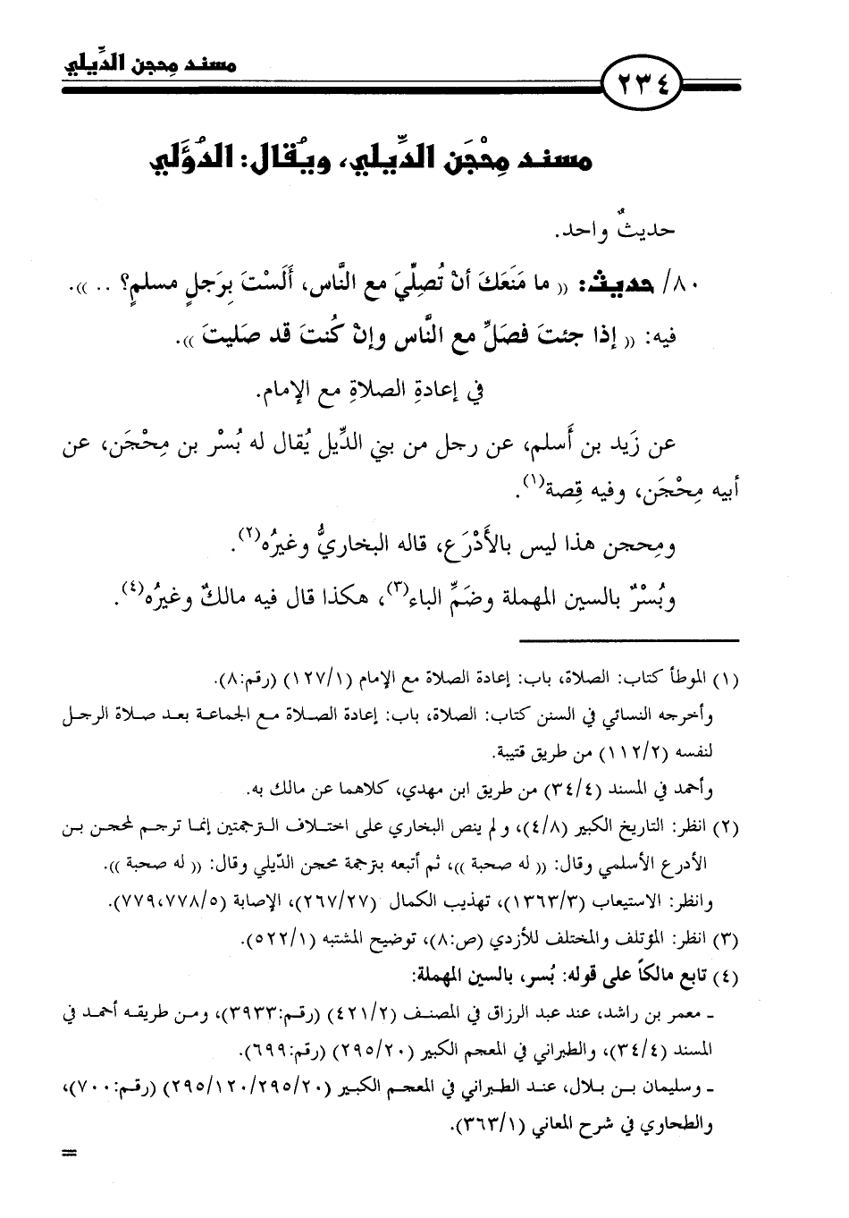 ٢٢/ مسند مِحْجَن الدِّيلي، ويُقال: الدُؤَلي