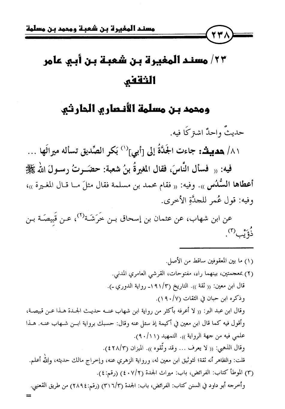 ٢٣/ مسند المغيرة بن شعبة بن أبي عامر الثقفي ومحمد بن مسلمة الأنصاري الحارثي