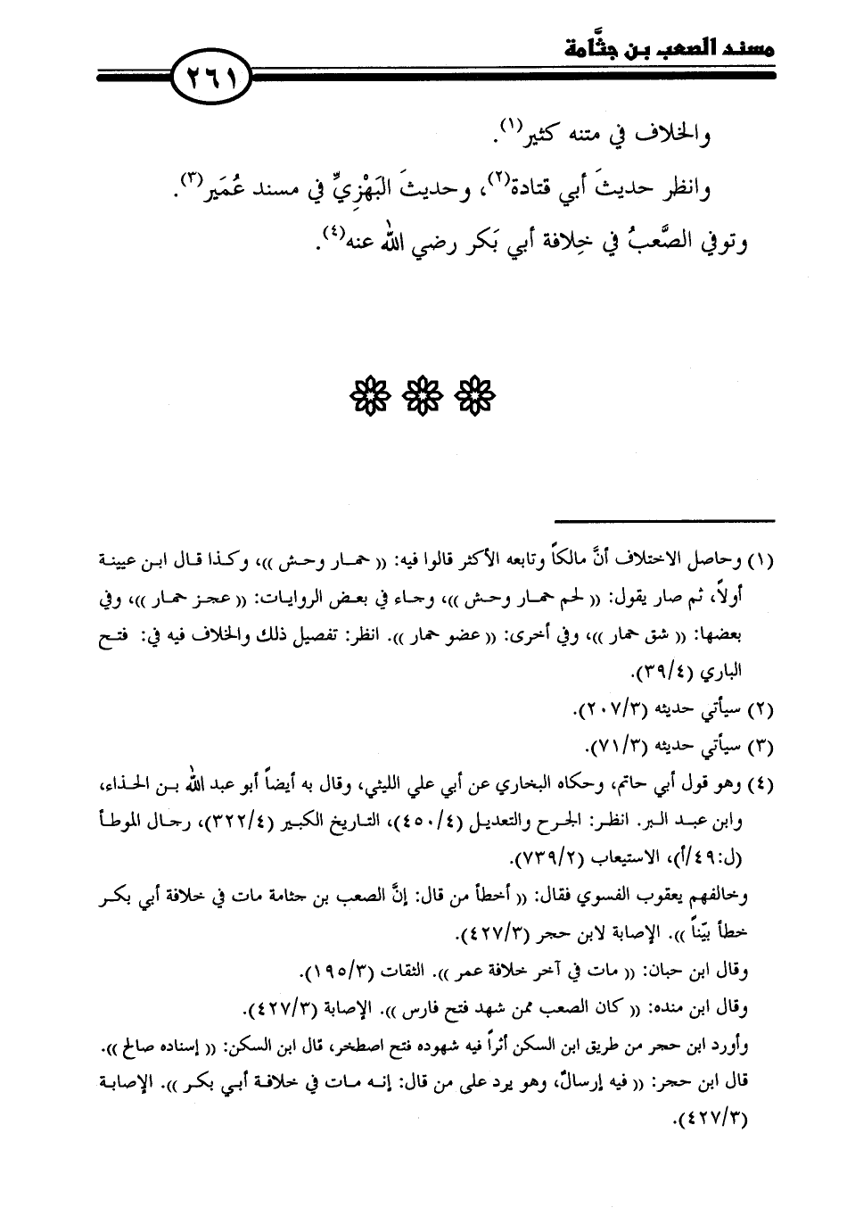 وخالفهم يعقوب الفسوي فقال: "أخطأ من قال: إنَّ الصعب بن حثامة مات في خلافة أبى بكر خطأ بيّنًا". الإصابة لابن حجر (٣/ ٤٢٧).