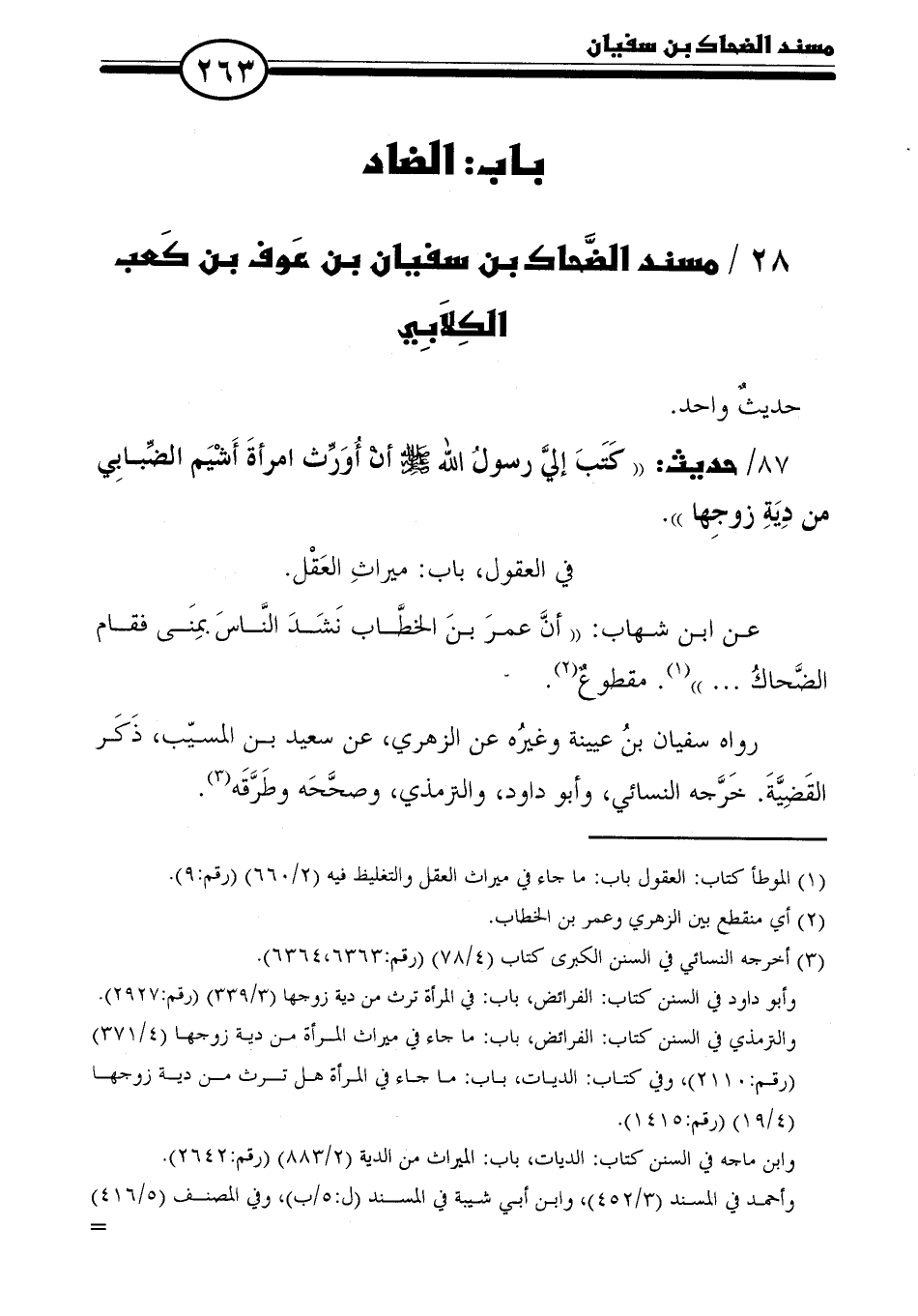 ٢٨/ مسند الضَّحاك بن سفيان بن عَوف بن كَعب الكِلَابِي