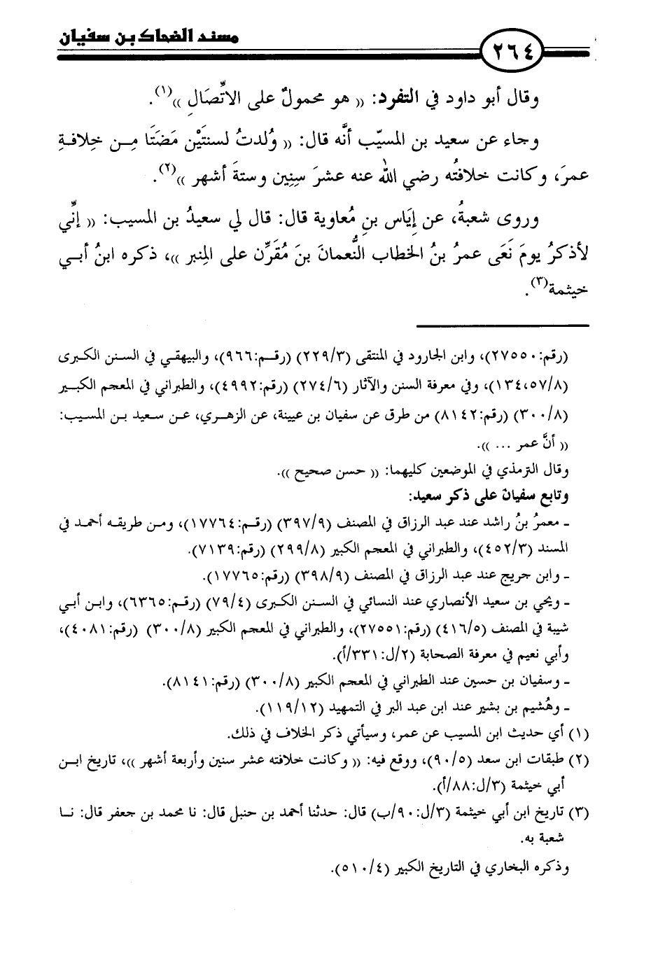(١) أي حديث ابن المسيب عن عمر، وسيأتي ذكر الخلاف في ذلك.