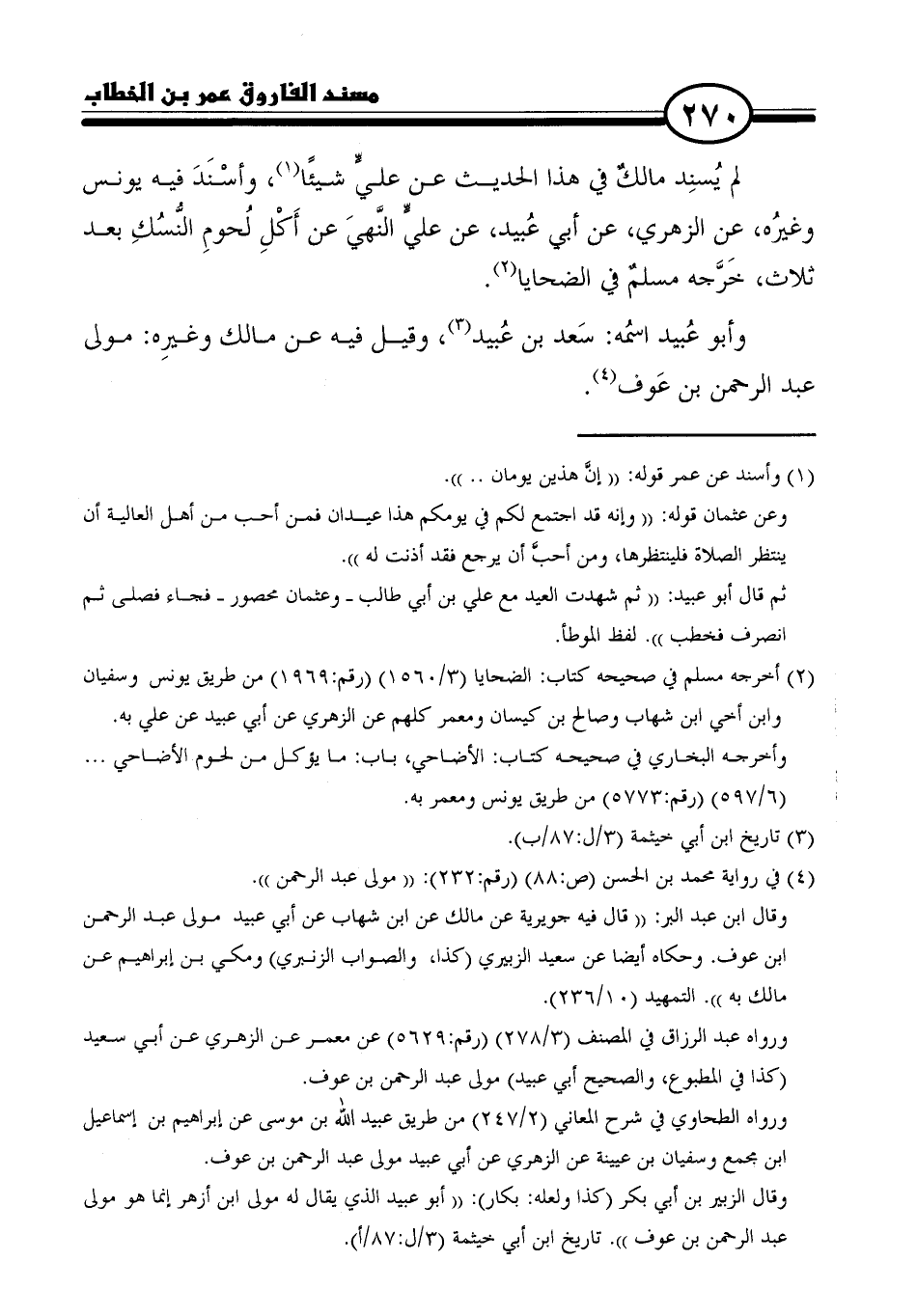 ورواه الطحاوي في شرح المعاني (٢/ ٢٤٧) من طريق عبيد الله بن موسى عن إبراهيم بن إسماعيل بن مجمع وسفيان بن عيينة عن الزهري عن أبي عبيد مولى عبد الرحمن بن عوف.