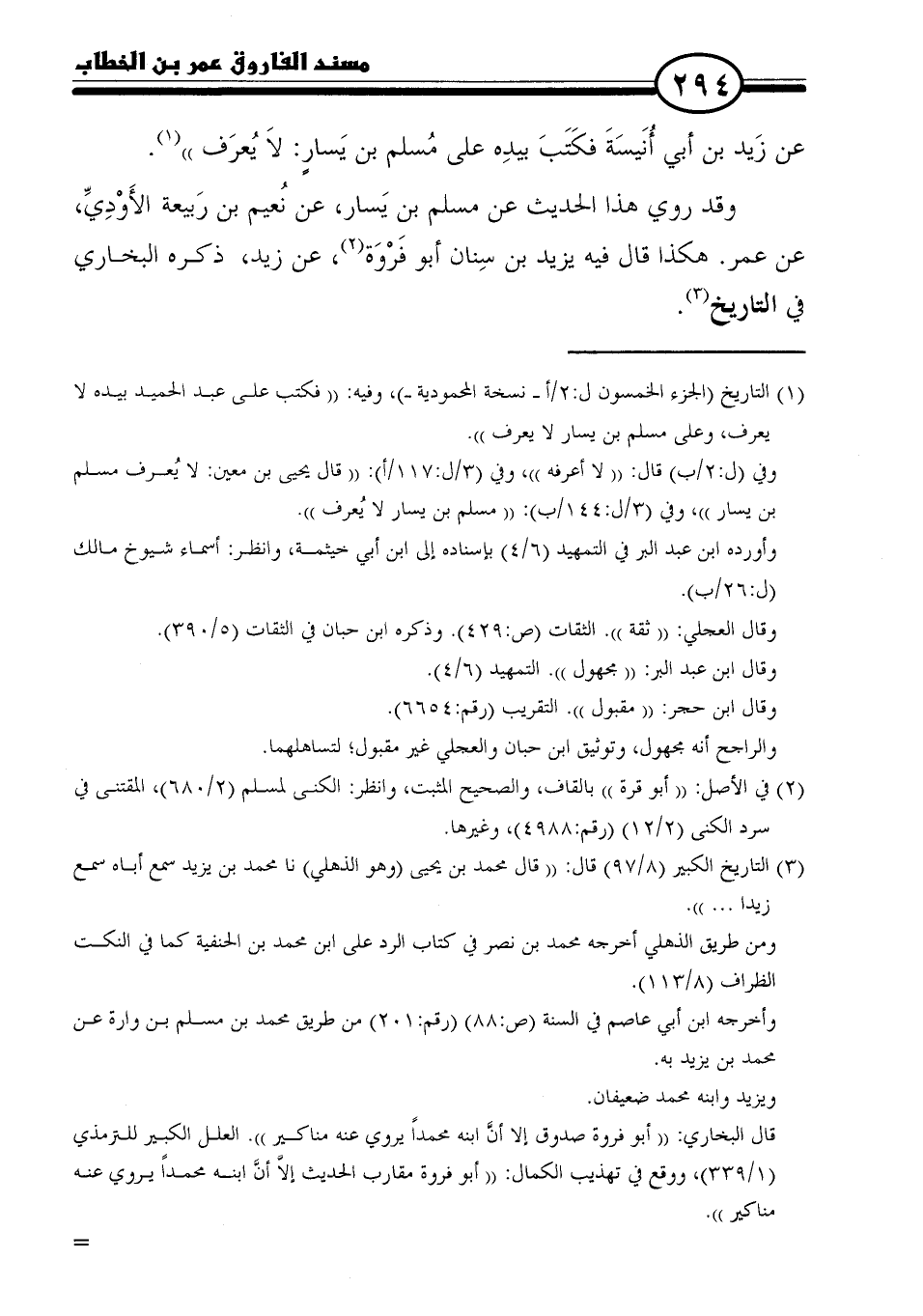 (١) التاريخ (الجزء الخمسون)، وفيه: "فكتب على عبد الحميد بيده لا يعرف، وعلى مسلم بن يسار لا يعرف".