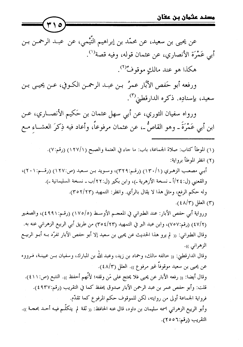 عن يحيى بن سعيد، عن محمّد بن إبراهيم التَّيْمي، عن عبد الرحمن بن أبي عَمْرَة الأنصاري، عن عثمان قوله، وفيه قصة (١).