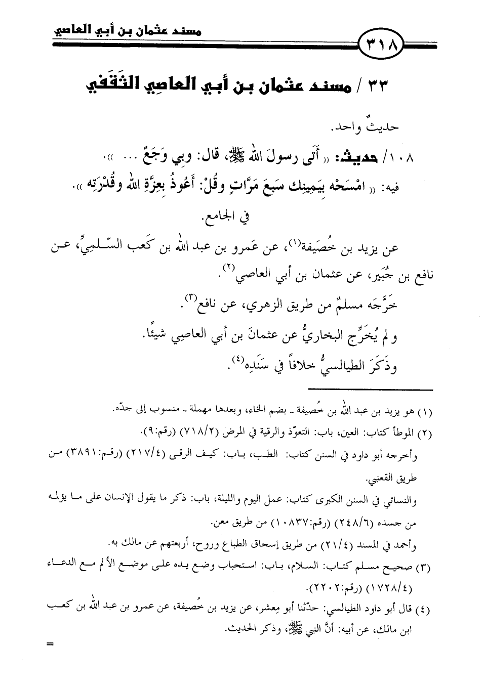 ٣٣ - مسند عثمان بن أبي العاصي الثَّقَفي