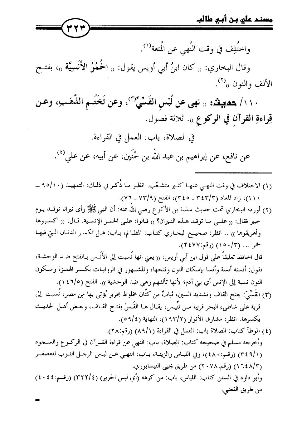 ١١٠ - حديث: "نهى عن لُبْسِ القَسِّيِّ (٣)، وعن تَخَتُّمِ الذَّهَبِ، وعن قِراءةِ القرآنِ في الركوع". ثلاثة فصول.