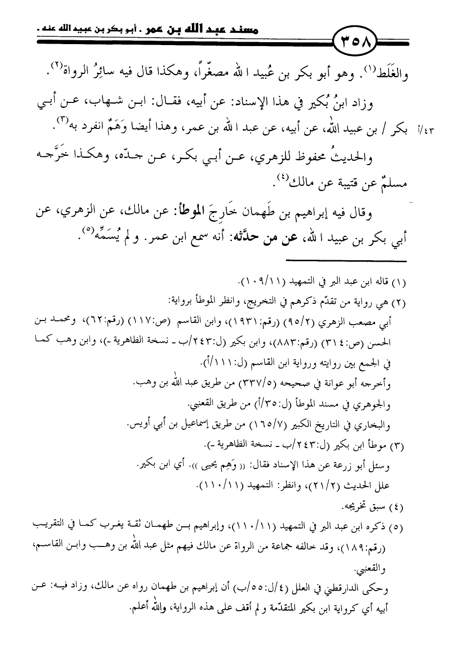 (٥) ذكره ابن عبد البر في التمهيد (١١/ ١١٠)، وإبراهيم بن طهمان ثقة يغرب كما في التقريب (رقم: ١٨٩)، وقد خالفه جماعة من الرواة عن ذلك فيهم مثل عبد الله بن وهب وابن القاسم، والقعنبي.