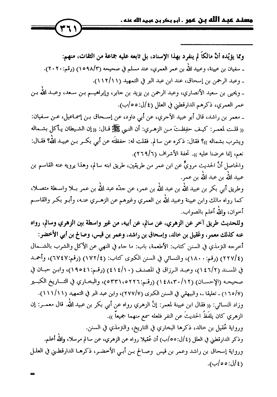 وطريق أبي بكر بن عبيد الله بن عبد الله بن عمر، عن جدّه عبد الله بن عمر بلا واسطة متصلا، كما رواه مالك وابن عيينة وعبيد الله بن العمري وغيرهم عن الزهري عنه، وأبو بكر والقاسم أخوان، والله أعلم بالصواب.
