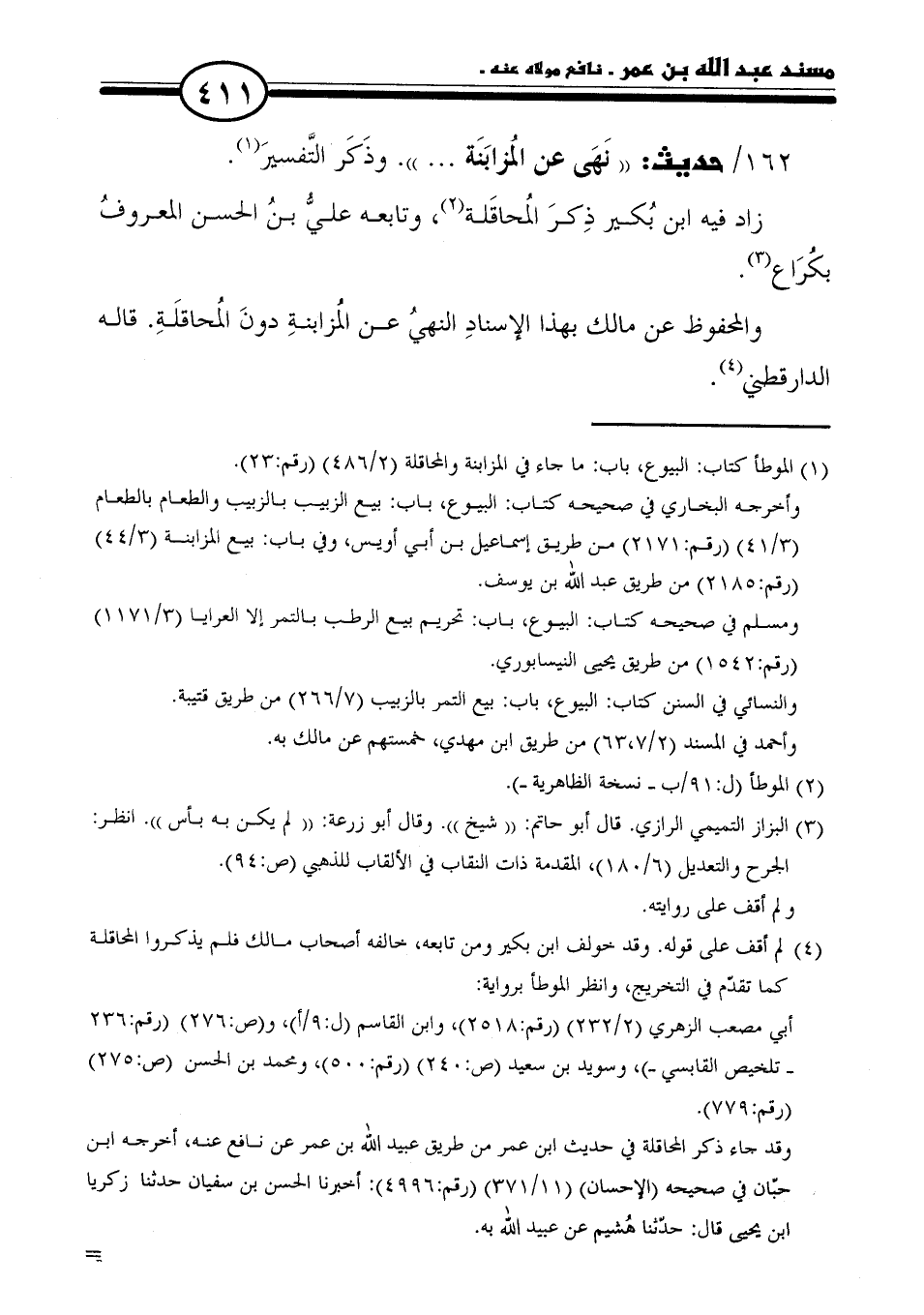 ١٦٢ / حديث: "نَهَى عن المزابَنَة ... ". وذكَر التفسيرَ (١).
