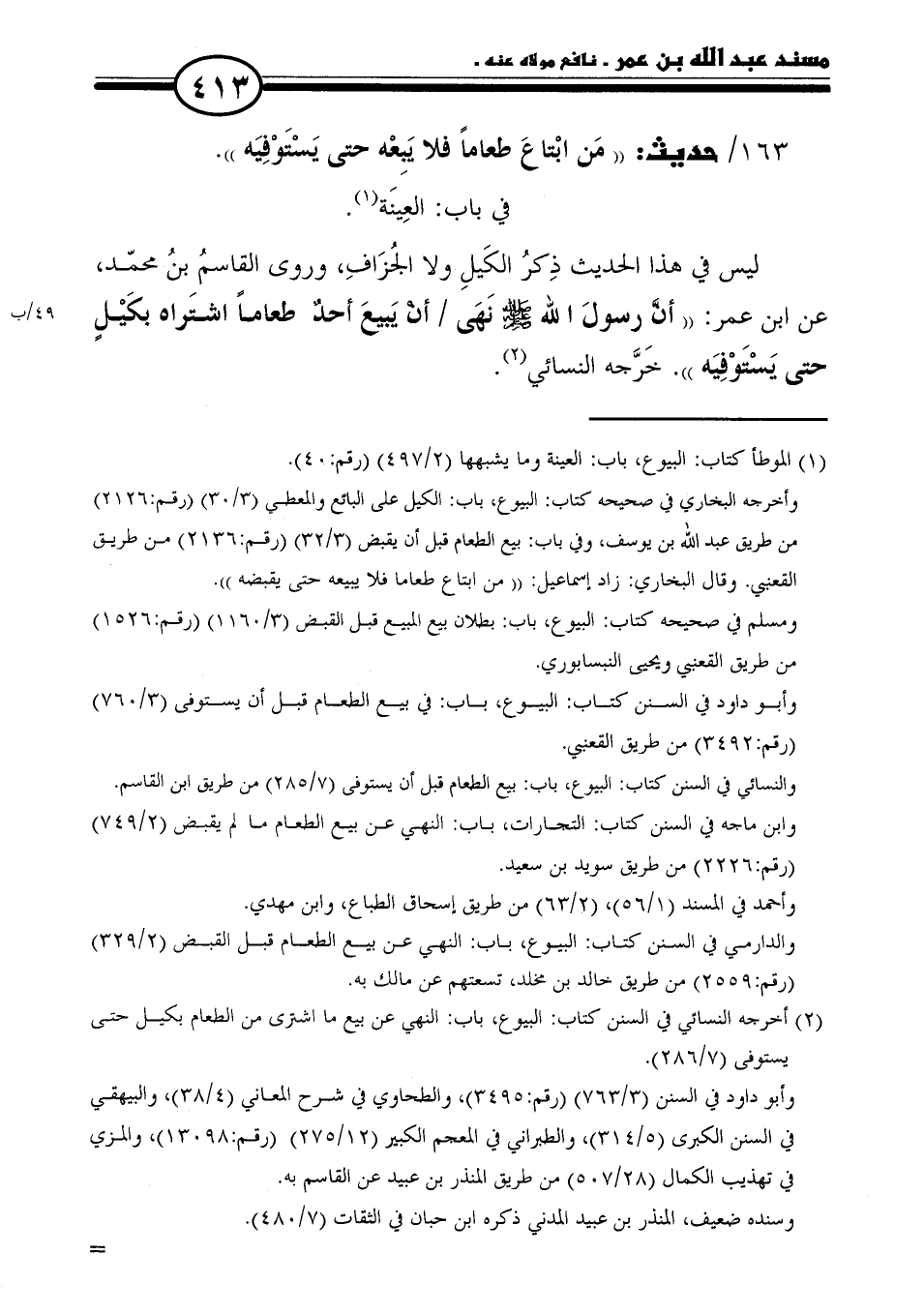 ١٦٣ / حديث: "مَن ابْتاعَ طعامًا فلا يَبِعْه حتى يَسْتَوْفِيَه".