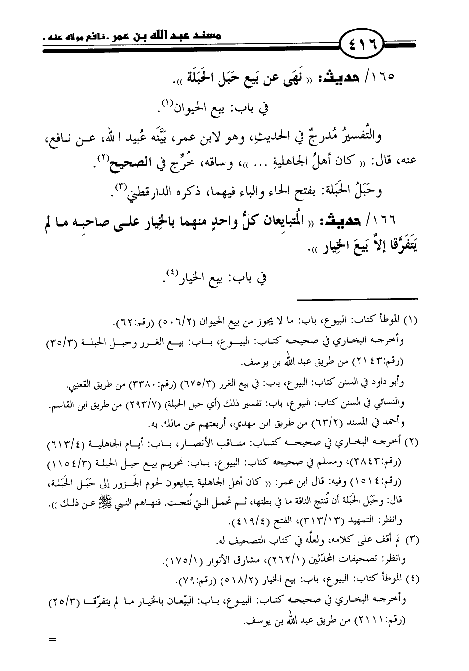 ١٦٥ / حديث: "نَهَى عن بَيع حَبَل الحَبَلَة".