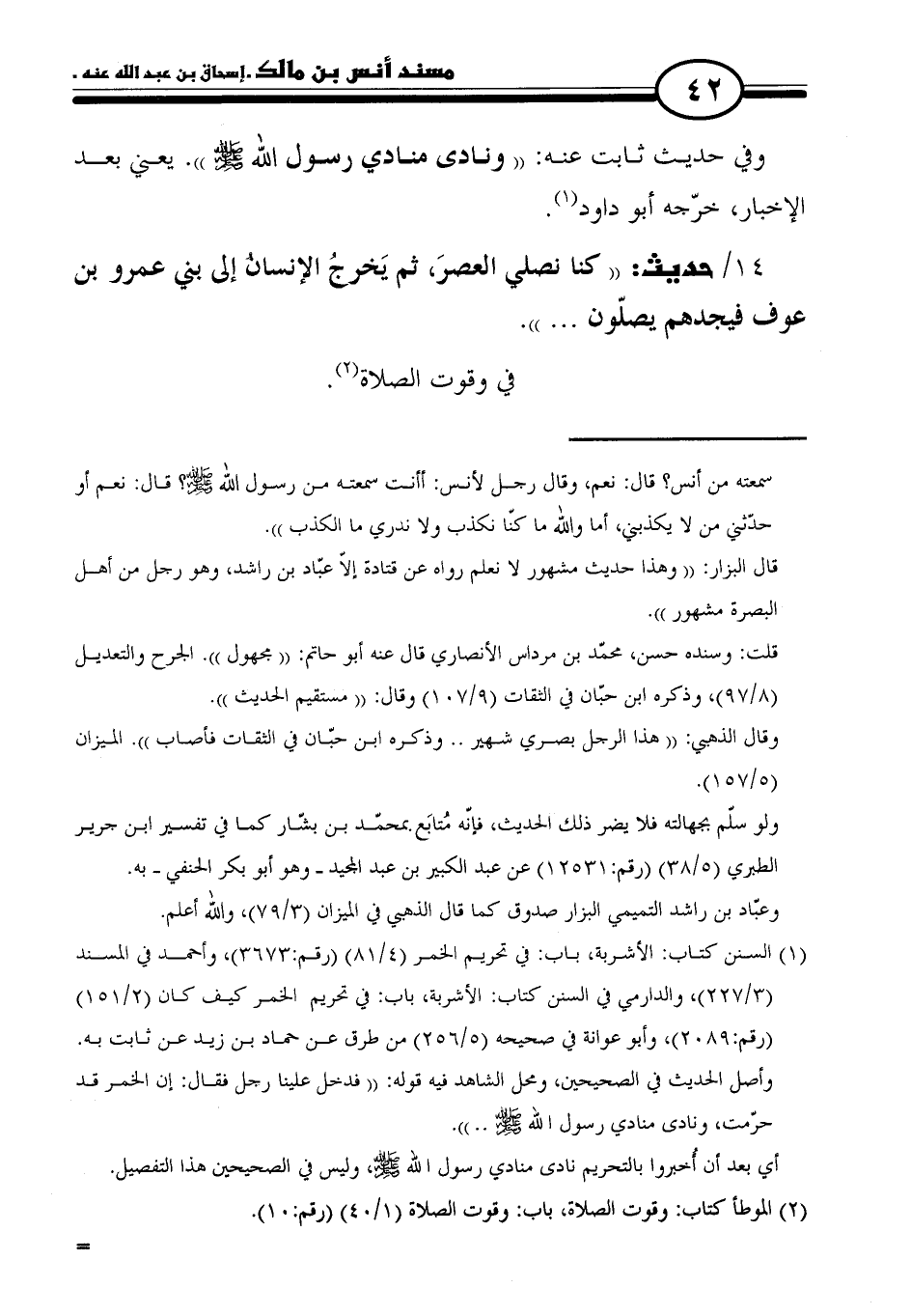 ١٤/ حديث: "كنا نصلي العصرَ، ثم يَخرجُ الإنسان إلى بني عمرو بن عوف فيجدهم يصلّون. . . ".