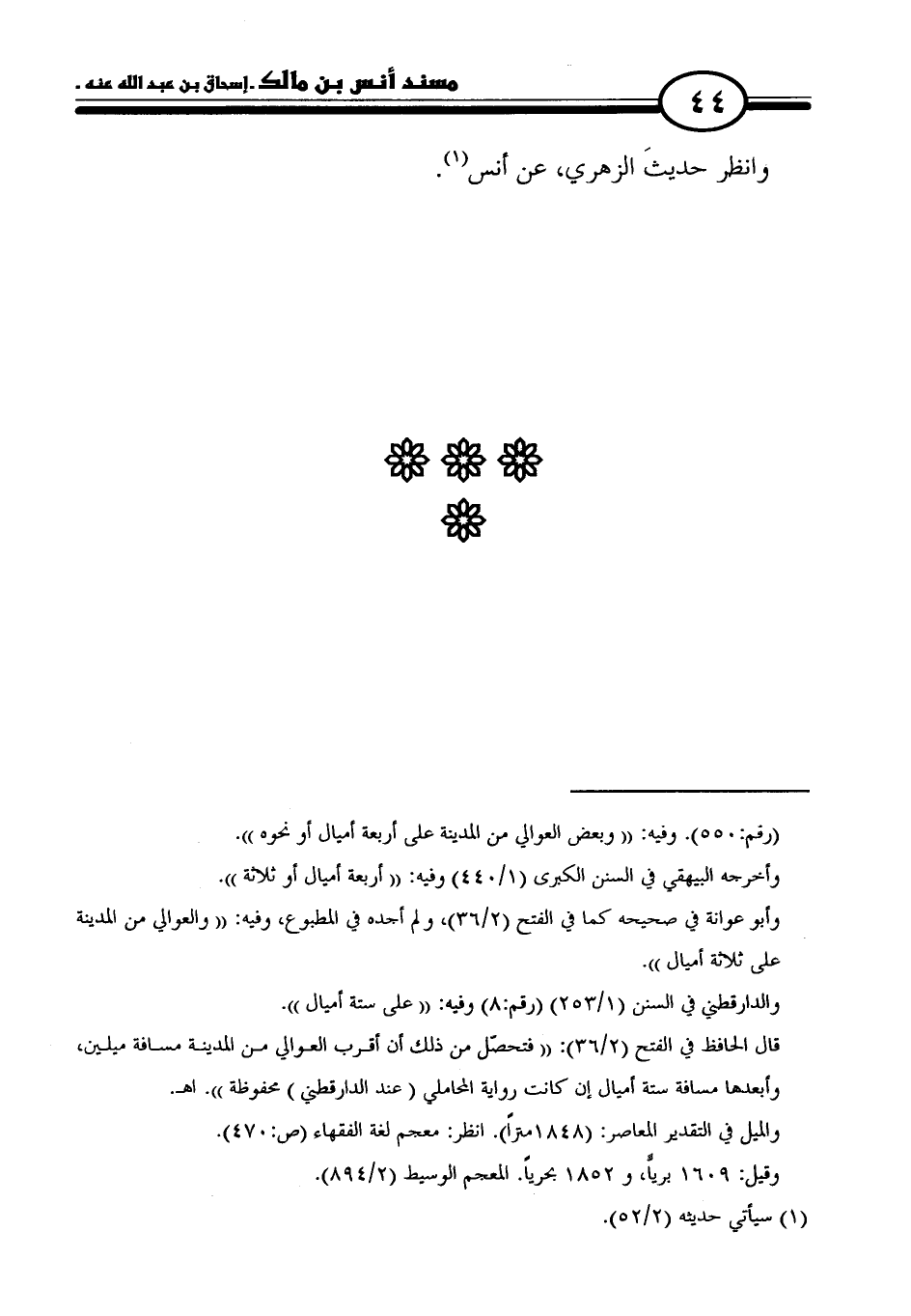= (رقم: ٥٥٠). وفيه: "وبعض العوالي من المدينة على أربعة أميال أو نحوه".