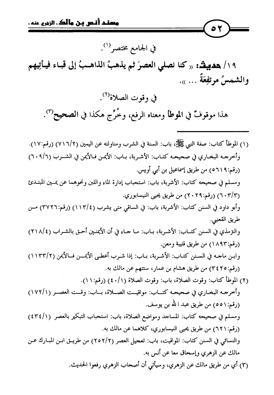 ١٩/ حديث: "كنا نصلي العصرَ ثم يذهبُ الذاهبُ إلى قباء فيأتِيهم والشمسُ مرتفِعَةٌ. . . ".