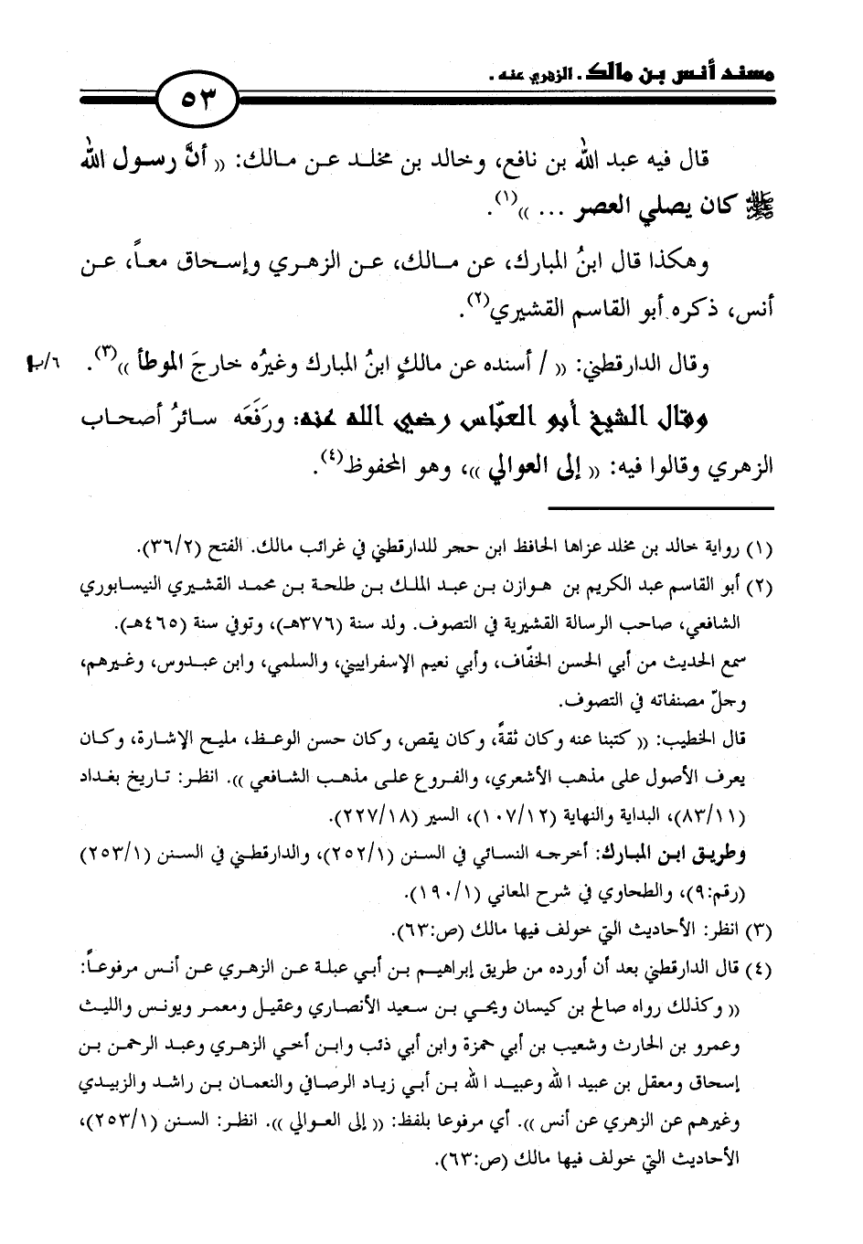 (٤) قال الدارقطني بعد أن أورده من طريق إبراهيم بن أبي عبلة عن الزهري عن أنس مرفوعًا: "وكذلك رواه صالح بن كيسان ويحيى بن سعيد الأنصاري وعقيل ومعمر ويونس والليث وعمرو بن الحارث وشعيب بن أبي حمزة وابن أبي ذئب وابن أخى الزهري وعبد الرحمن بن إسحاق ومعقل بن عبيد الله وعبيد الله بن أبي زياد الرصافي والنعمان بن راشد والزبيدي وغيرهم عن الزهري عن أنس". أي مرفوعا بلفظ: "إلى العوالي". انظر: السنن (١/ ٢٥٣)، الأحاديث التي خولف فيها مالك (ص: ٦٣). =