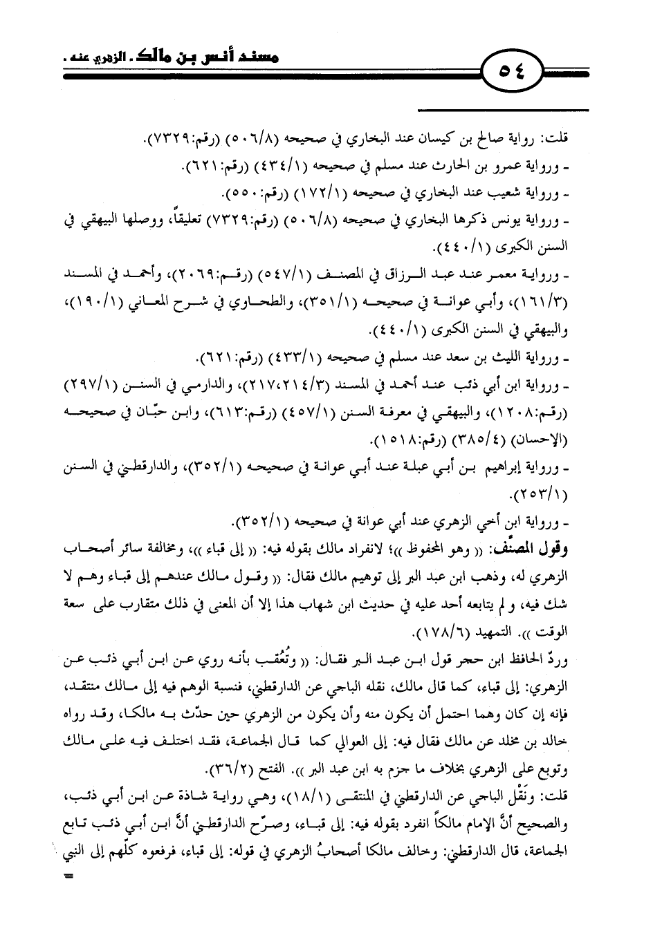 وردّ الحافظ ابن حجر قول ابن عبد البر فقال: "وتُعقب بأنه روي عن ابن أبي ذئب عن الزهري: إلى قباء، كما قال مالك، نقله الباجي عن الدارقطني، فنسبة الوهم فيه إلى مالك منتقد، فإنه إن كان وهما احتمل أن يكون منه وأن يكون من الزهري حين حدّث به مالكا، وقد رواه خالد بن مخلد عن مالك فقال فيه: إلى العوالي كما قال الجماعة، فقد اختلف فيه على مالك وتوبع على الزهري بخلاف ما جزم به ابن عبد البر". الفتح (٢/ ٣٦).