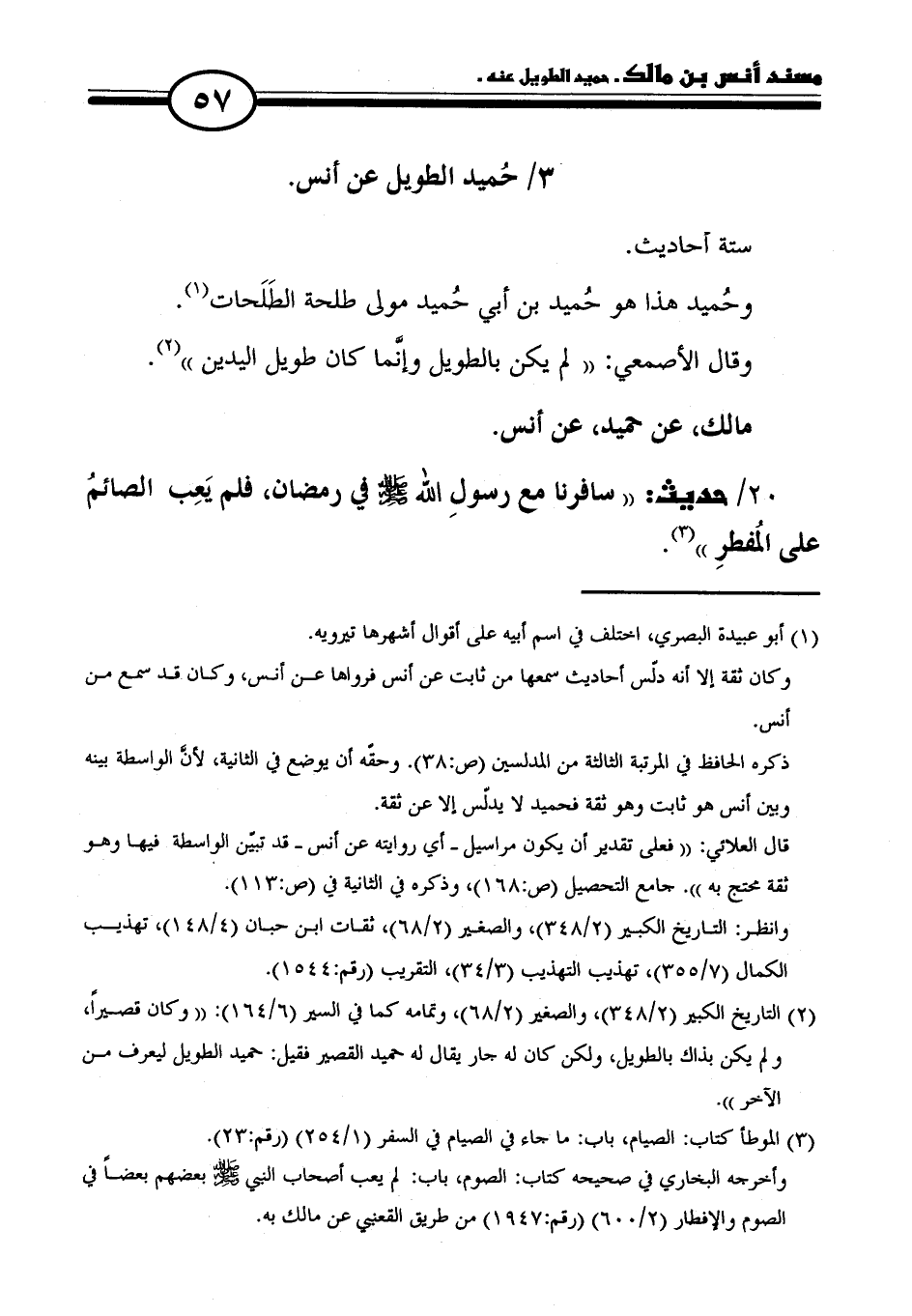 (٢) التاريخ الكبير (٢/ ٣٤٨)، والصغير (٢/ ٦٨)، وتمامه كما في السير (٦/ ١٦٤): "وكان قصيرًا، ولم يكن بذاك بالطويل، ولكن كان له جار يقال له حميد القصير فقيل: حميد الطويل ليعرف من الآخر".