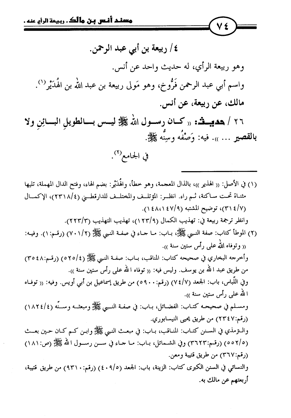 وانظر ترجمة ربيعة في: تهذيب الكمال (٩/ ١٢٣)، تهذيب التهذيب (٣/ ٢٢٣).