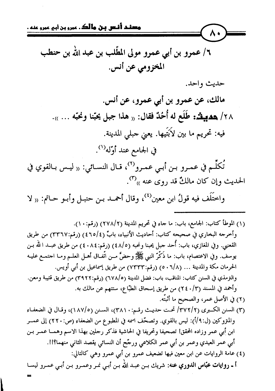 ٦/ عمرو بن أبي عمرو مولى المطلب بن عبد الله بن حنطب المخزومي عن أنس.