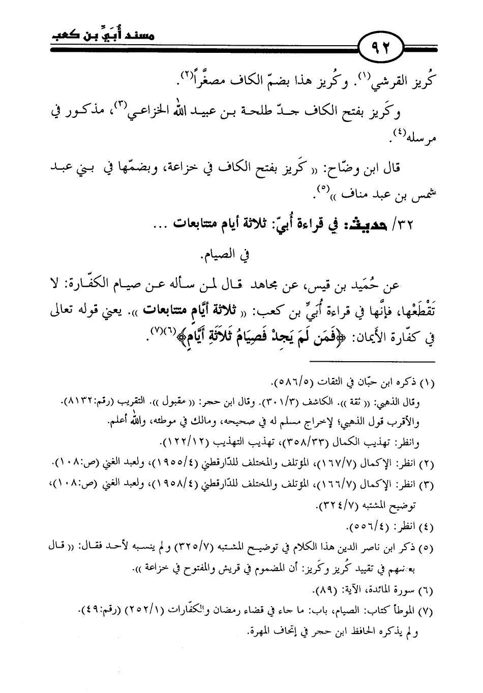 ٣٢ / حديث: في قراءة أُبيّ: ثلاثة أيام متتابعات. . .