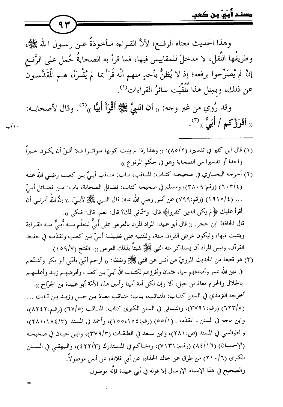 وقد رُوي من غير وجه: "أن النبيَّ - صلى الله عليه وسلم - أَقْرَأَ أُبيًّا" (٢). وقال لأصحابه: "أقرَؤُكم أُبَيٌّ" (٣).