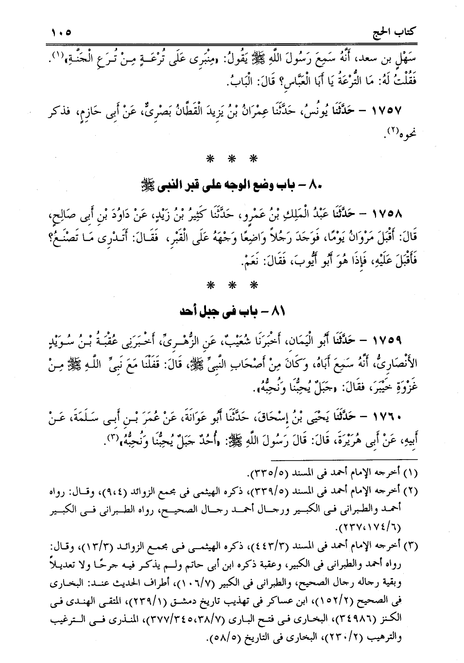 1760 - حَدَّثَنَا يَحْيَى بْنُ إِسْحَاقَ، حَدَّثَنَا أَبُو عَوَانَةَ، عَنْ عُمَرَ بْنِ أَبِى سَلَمَةَ، عَنْ أَبِيهِ، عَنْ أَبِى هُرَيْرَةَ، قَالَ: قَالَ رَسُولَ اللَّهِ صلى الله عليه وسلم: "أُحُدٌ جَبَلٌ يُحِبُّنَا وَنُحِبُّهُ.