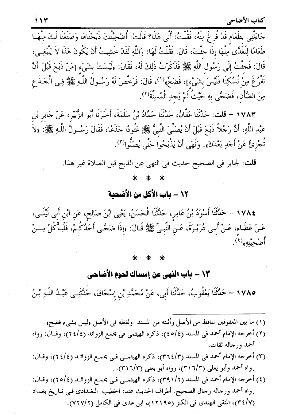 1783 - قلت: حَدَّثَنَا عَفَّانُ، حَدَّثَنَا حَمَّادُ بْنُ سَلَمَةَ، أَخْبَرَنَا أَبُو الزُّبَيْرِ، عَنْ جَابِرِ بْنِ عَبْدِ اللَّهِ، أَنَّ رَجُلاً ذَبَحَ قَبْلَ أَنْ يُصَلِّىَ النَّبِىُّ صلى الله عليه وسلم عَتُودًا جَذَعًا، فَقَالَ رَسُولُ اللَّهِ صلى الله عليه وسلم: "لاَ تُجْزِئُ عَنْ أَحَدٍ بَعْدَكَ. وَنَهَى أَنْ يَذْبَحُوا حَتَّى يُصَلُّوا.