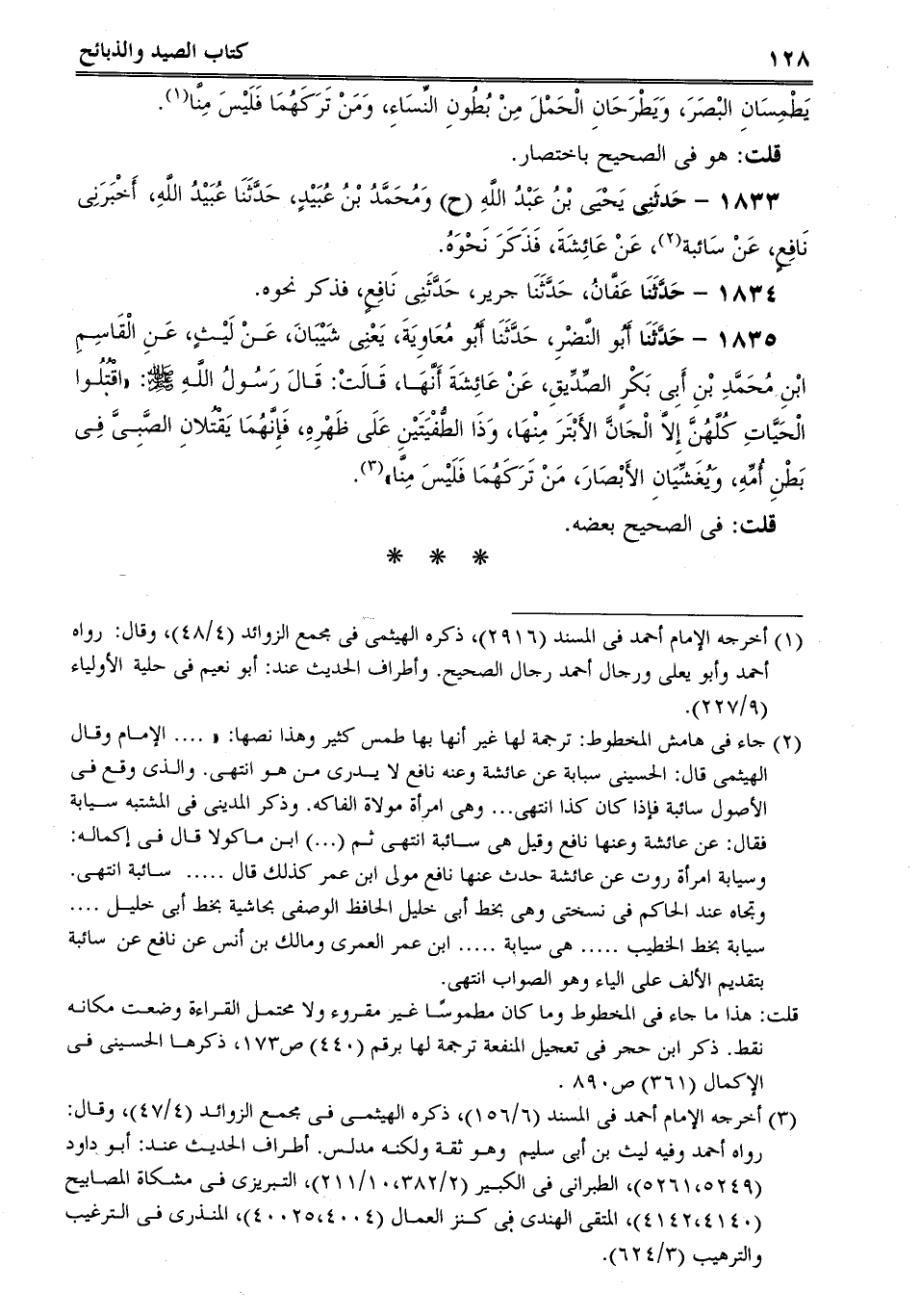 1833 - حَدثَنِى يَحْيَى بْنُ عَبْدُ اللَّهِ (ح) وَمُحَمَّدُ بْنُ عُبَيْدٍ، حَدَّثَنَا عُبَيْدُ اللَّهِ، أَخْبَرَنِى نَافِعٍ، عَنْ سَائبة، عَنْ عَائِشَةَ، فَذَكَرَ نَحْوَهُ.