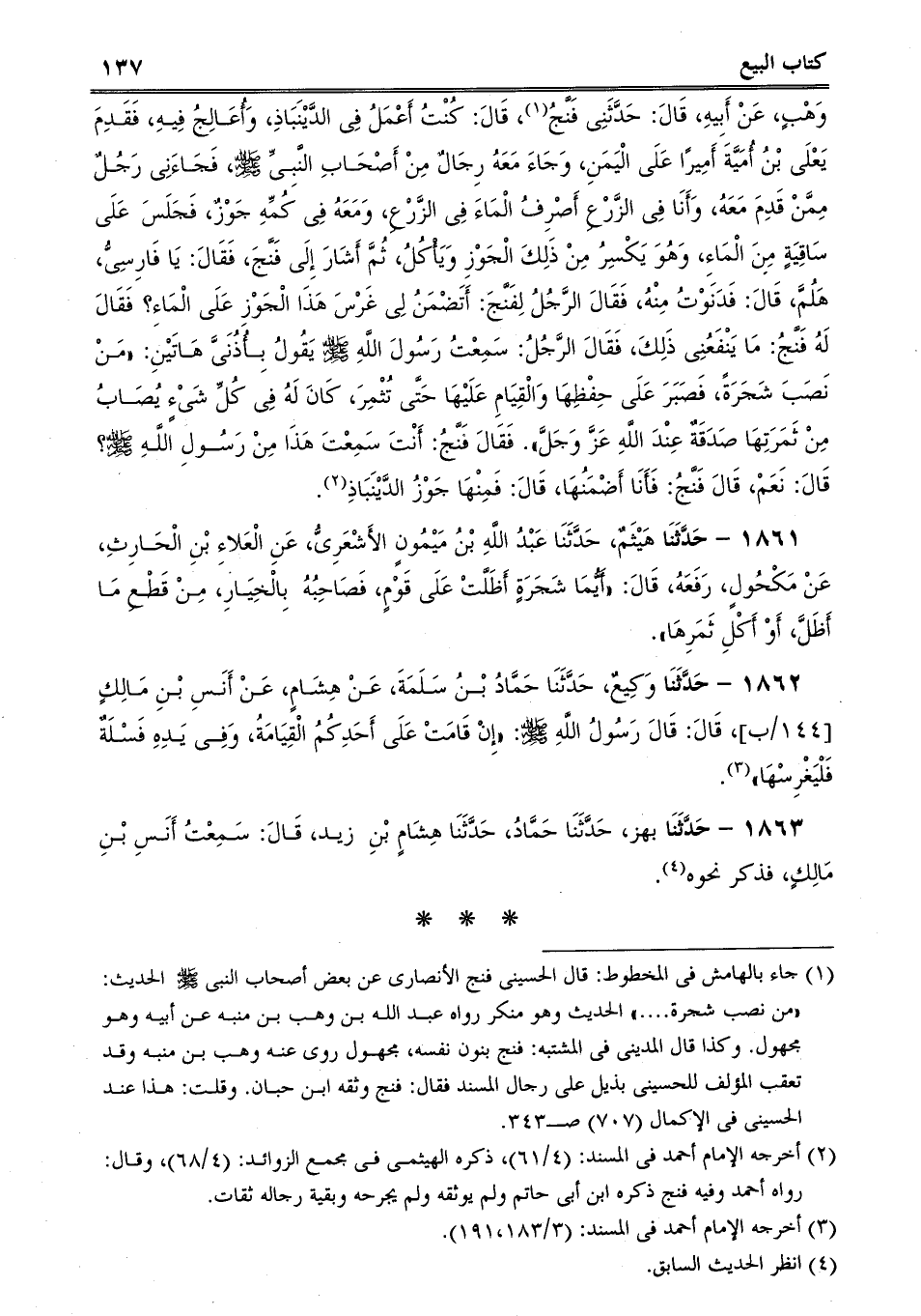 1863 - حَدَّثَنَا بهز، حَدَّثَنَا حَمَّادُ، حَدَّثَنَا هِشَامٍ بْنِ زيد، قَالَ: سَمِعْتُ أَنَسِ بْنِ مَالِكٍ، فذكر نحوه.