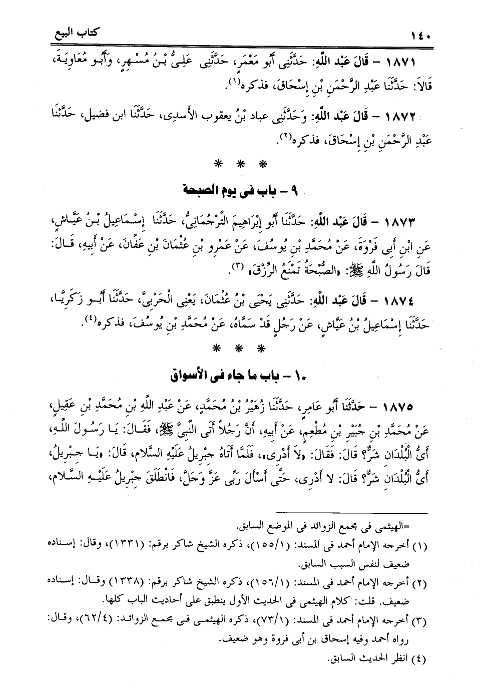 1873 - قَالَ عَبْد اللَّهِ: حَدَّثَنَا أَبُو إِبْرَاهِيمَ التَّرْجُمَانِىُّ، حَدَّثَنَا إِسْمَاعِيلُ بْنُ عَيَّاشٍ، عَنِ ابْنِ أَبِى فَرْوَةَ، عَنْ مُحَمَّدِ بْنِ يُوسُفَ، عَنْ عَمْرِو بْنِ عُثْمَانَ بْنِ عَفَّانَ، عَنْ أَبِيهِ، قَالَ: قَالَ رَسُولُ اللَّهِ صلى الله عليه وسلم: "الصُّبْحَةُ تَمْنَعُ الرِّزْقَ.