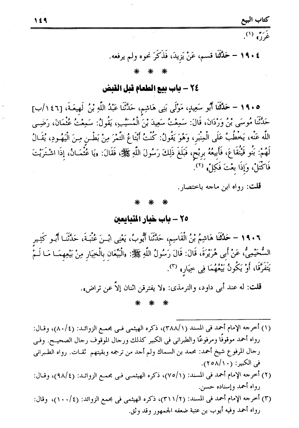 1906 - حَدَّثَنَا هَاشِمُ بْنُ الْقَاسِمِ، حَدَّثَنَا أَيُّوبُ، يَعْنِى ابْنَ عُتْبَةَ، حَدَّثَنَا أَبُو كَثِيرٍ السُّحَيْمِىُّ، عَنْ أَبِى هُرَيْرَةَ، قَالَ: قَالَ رَسُولُ اللَّهِ صلى الله عليه وسلم: "الْبَيِّعَانِ بِالْخِيَارِ مِنْ بَيْعِهِمَا مَا لَمْ يَتَفَرَّقَا، أَوْ يَكُونُ بَيْعُهُمَا فِى خِيَارٍ.