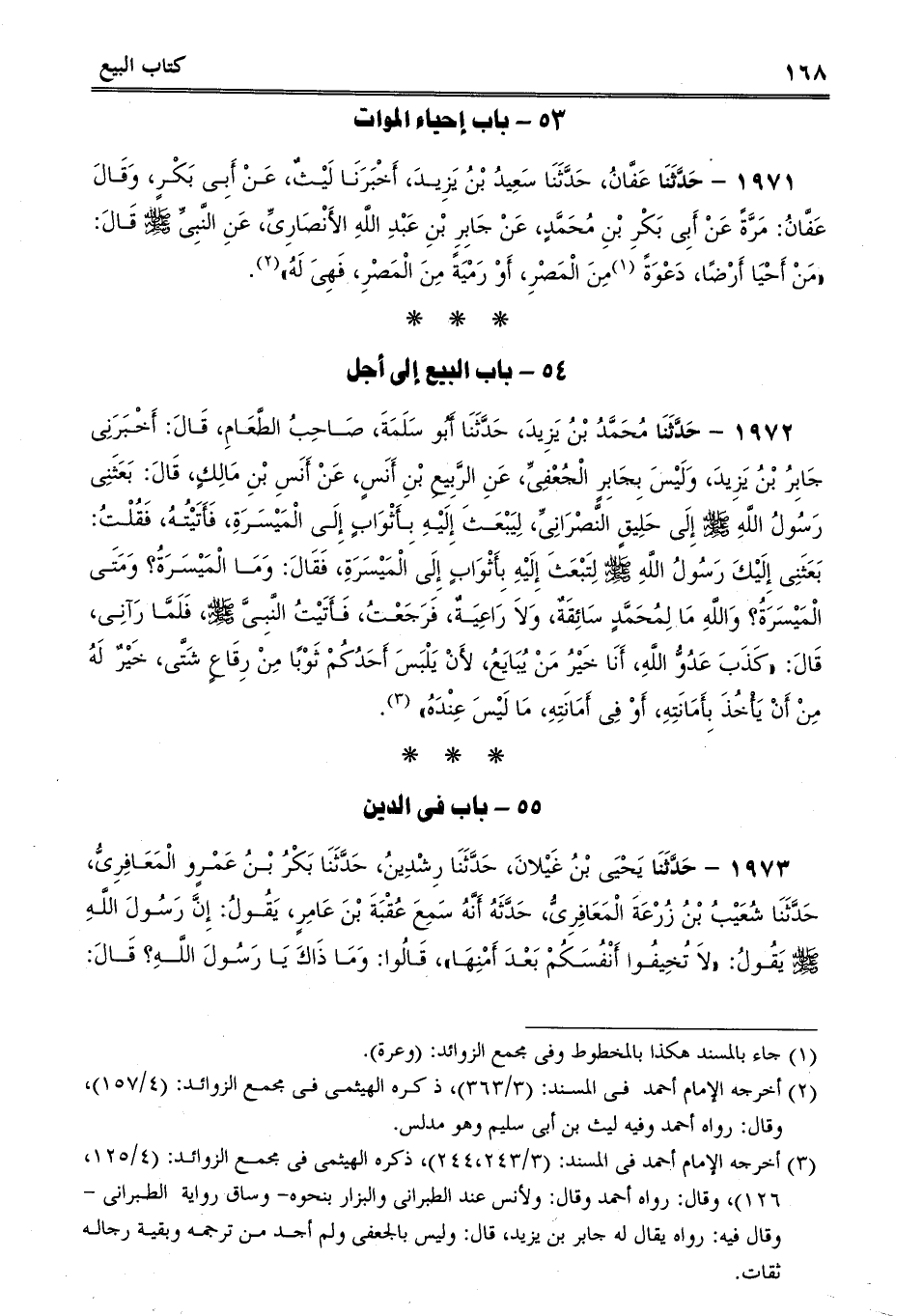 1971 - حَدَّثَنَا عَفَّانُ، حَدَّثَنَا سَعِيدُ بْنُ يَزِيدَ، أَخْبَرَنَا لَيْثٌ، عَنْ أَبِى بَكْرٍ، وَقَالَ عَفَّانُ: مَرَّةً عَنْ أَبِى بَكْرِ بْنِ مُحَمَّدٍ، عَنْ جَابِرِ بْنِ عَبْدِ اللَّهِ الأَنْصَارِىِّ، عَنِ النَّبِىِّ صلى الله عليه وسلم قَالَ: "مَنْ أَحْيَا أَرْضًا، دَعْوَةً مِنَ الْمَصْرِ، أَوْ رَمْيَةً مِنَ الْمَصْرِ، فَهِىَ لَهُ.