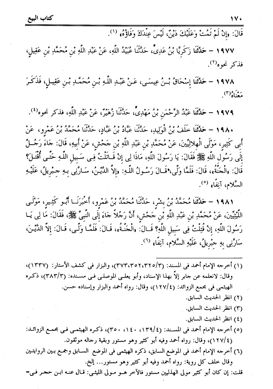 1980 - حَدَّثَنَا خَلَفُ بْنُ الْوَلِيدِ، حَدَّثَنَا عَبَّادُ بْنُ عَبَّادٍ، حَدَّثَنَا مُحَمَّدُ بْنُ عَمْرٍو، عَنْ أَبِى كَثِيرٍ، مَوْلَى الْهِلالِيِّينَ، عَنْ مُحَمَّدِ بْنِ عَبْدِ اللَّهِ بْنِ جَحْشٍ، عَنْ أَبِيهِ، قَالَ: جَاءَ رَجُلٌ إِلَى رَسُولِ اللَّهِ صلى الله عليه وسلم فَقَالَ: يَا رَسُولَ اللَّهِ، مَاذَا لِى إِنْ قَاتَلْتُ فِى سَبِيلِ اللَّهِ حَتَّى أُقْتَلَ؟ قَالَ: "الْجَنَّةُ، قَالَ: فَلَمَّا وَلَّى، قَالَ رَسُولُ اللَّهِ: "إِلاَّ الدَّيْنُ، سَارَّنِى بِهِ جِبْرِيلُ، عَلَيْهِ السَّلام، آنِفًا.