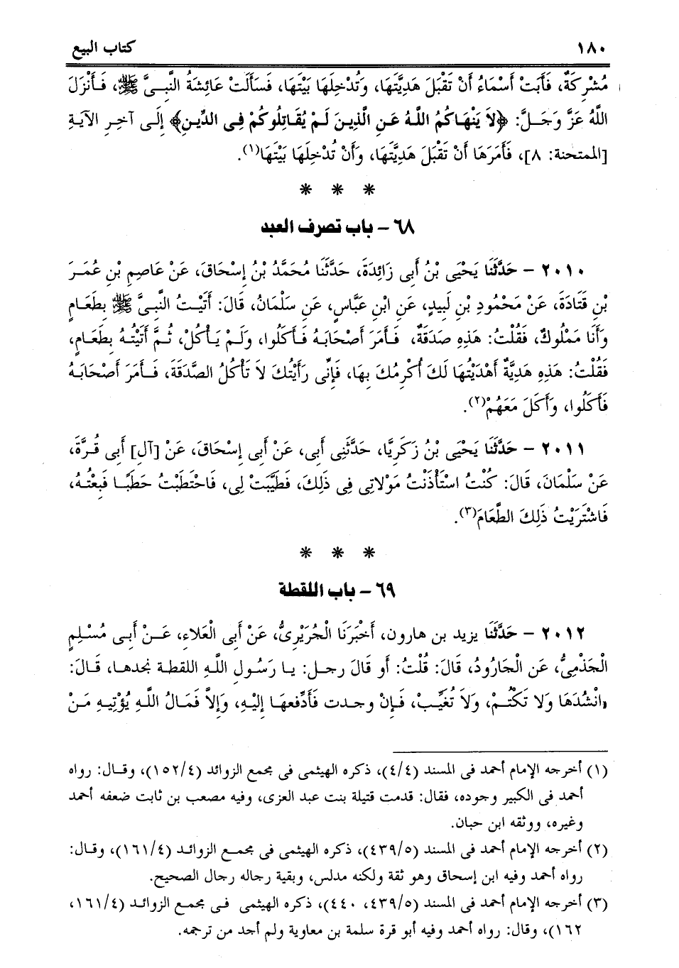 2012 - حَدَّثَنَا يزيد بن هارون، أَخْبَرَنَا الْجُرَيْرِىُّ، عَنْ أَبِى الْعَلاءِ، عَنْ أَبِى مُسْلِمٍ الْجَذْمِىُّ، عَن الْجَارُودُ، قَالَ: قُلْتُ: أَو قَالَ رجل: يا رَسُولِ اللَّهِ اللقطة نجدها، قَالَ: "انْشُدَهَا وَلا تَكْتُمْ، وَلاَ تُغَيِّبْ، فَإِنْ وجدت فَأَدِّفعهَا إِليْهِ، وَإِلاَّ فَمَالُ اللَّهِ يُؤْتِيهِ مَنْ -[181]- يَشَاءُ.