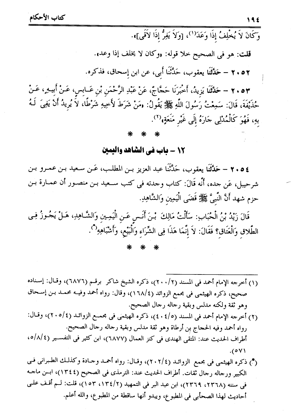 قَالَ زَيْدُ بْنُ الْحُبَابِ: سَأَلْتُ مَالِكَ بْنَ أَنَسٍ عَنِ الْيَمِينِ وَالشَّاهِدِ، هَلْ يَجُوزُ فِى الطَّلاقِ وَالْعَتَاقِ؟ فَقَالَ: لاَ إِنَّمَا هَذَا فِى الشِّرَاءِ وَالْبَيْعِ، وَأَشْبَاهِهِ.