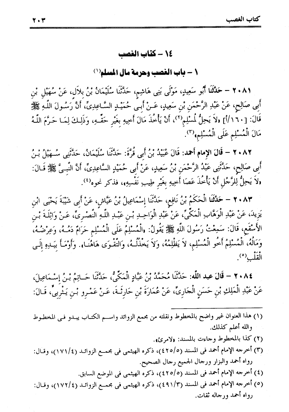2081 - حَدَّثَنَا أَبُو سَعِيدٍ، مَوْلَى بَنِى هَاشِمٍ، حَدَّثَنَا سُلَيْمَانُ بْنُ بِلاَلٍ، عَنْ سُهَيْلِ بْنِ أَبِى صَالِحٍ، عَنْ عَبْدِ الرَّحْمَنِ بْنِ سَعِيدٍ، عَنْ أَبِى حُمَيْدٍ السَّاعِدِىِّ، أَنَّ رَسُولَ اللَّهِ صلى الله عليه وسلم قَالَ: "لاَ يَحِلُّ لمُسْلِمِ، أَنْ يَأْخُذَ مَالَ أَخِيهِ بِغَيْرِ حَقِّهِ، وَذَلِكَ لِمَا حَرَّمَ اللَّهُ مَالَ الْمُسْلِمِ عَلَى الْمُسْلِمِ.