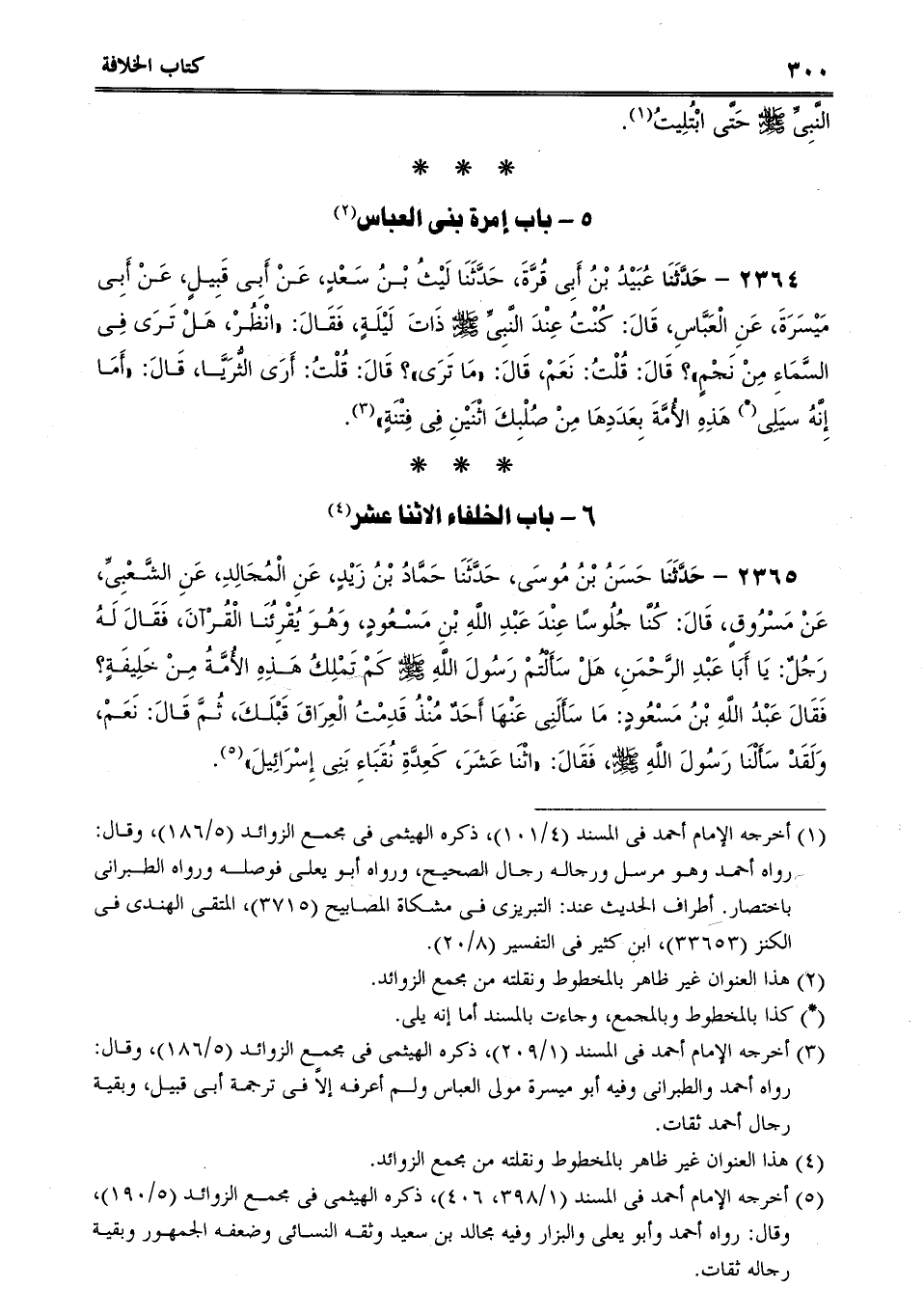 2365 - حَدَّثَنَا حَسَنُ بْنُ مُوسَى، حَدَّثَنَا حَمَّادُ بْنُ زَيْدٍ، عَنِ الْمُجَالِدِ، عَنِ الشَّعْبِىِّ، عَنْ مَسْرُوقٍ، قَالَ: كُنَّا جُلُوسًا عِنْدَ عَبْدِ اللَّهِ بْنِ مَسْعُودٍ، وَهُوَ يُقْرِئُنَا الْقُرْآنَ، فَقَالَ لَهُ رَجُلٌ: يَا أَبَا عَبْدِ الرَّحْمَنِ، هَلْ سَأَلْتُمْ رَسُولَ اللَّهِ صلى الله عليه وسلم كَمْ تَمْلِكُ هَذِهِ الأُمَّةُ مِنْ خَلِيفَةٍ؟ فَقَالَ عَبْدُ اللَّهِ بْنُ مَسْعُودٍ: مَا سَأَلَنِى عَنْهَا أَحَدٌ مُنْذُ قَدِمْتُ الْعِرَاقَ قَبْلَكَ، ثُمَّ قَالَ: نَعَمْ، وَلَقَدْ سَأَلْنَا رَسُولَ اللَّهِ صلى الله عليه وسلم، فَقَالَ: "اثْنَا عَشَرَ، كَعِدَّةِ نُقَبَاءِ بَنِى إِسْرَائِيلَ.