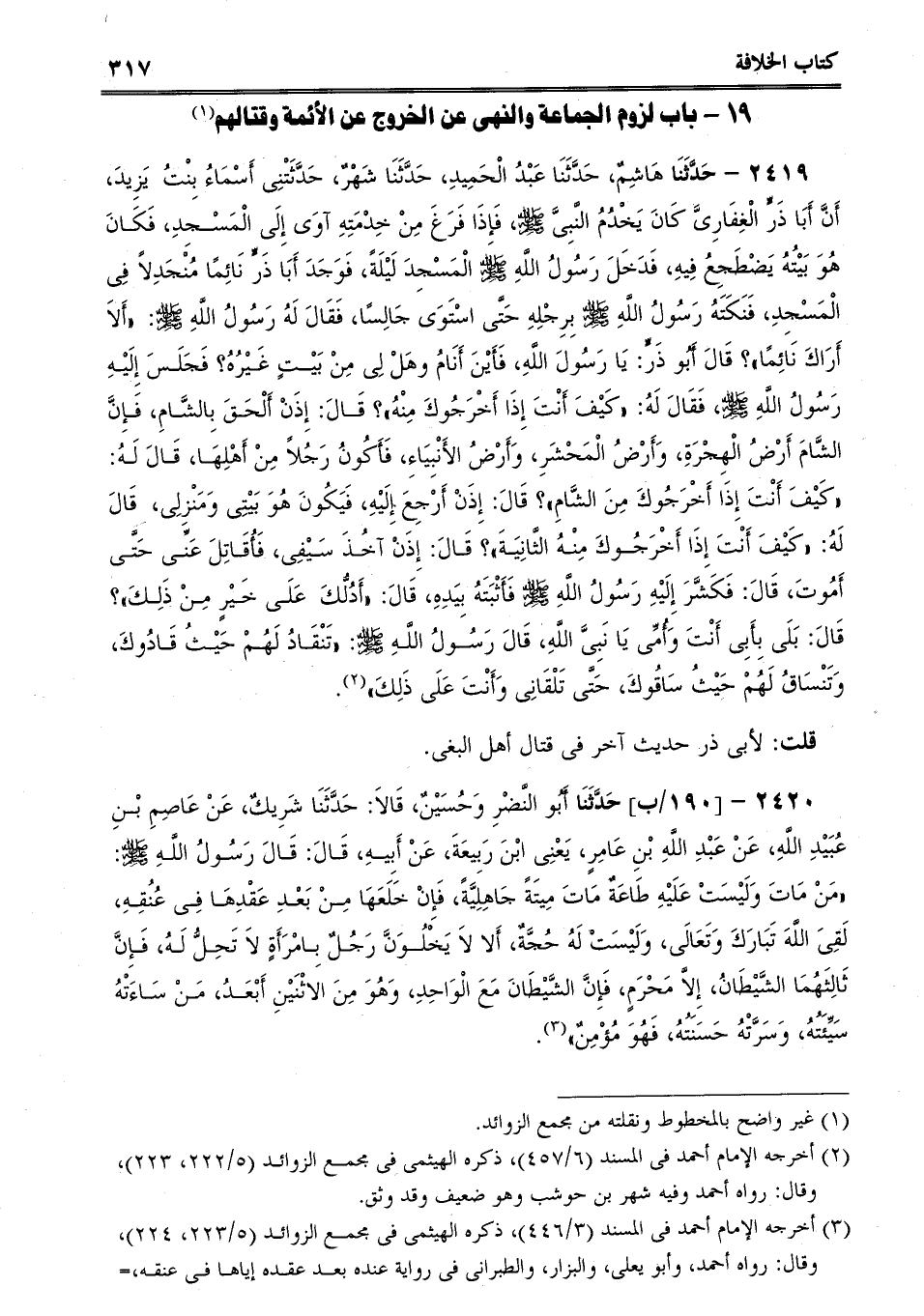 باب لزوم الجماعة والنهى عن الخروج عن الأئمة وقتالهم