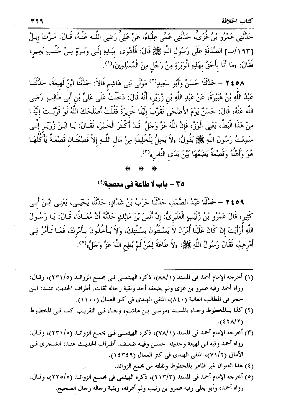 2459 - حَدَّثَنَا عَبْدُ الصَّمَدِ، حَدَّثَنَا حَرْبُ بْنُ شَدَّادٍ، حَدَّثَنَا يَحْيَى، يَعْنِى ابْنَ أَبِى كَثِيرٍ، قَالَ عَمْرُو بْنُ زُنَيْبٍ الْعَنْبَرِىُّ: إِنَّ أَنَسَ بْنَ مَالِكٍ حَدَّثَهُ أَنَّ مُعَاذًا، قَالَ: يَا رَسُولَ اللَّهِ أَرَأَيْتَ إِنْ كَانَ عَلَيْنَا أُمَرَاءُ لاَ يَسْتَنُّونَ بِسُنَّتِكَ، وَلاَ يَأْخُذُونَ بِأَمْرِكَ، فَمَا تَأْمُرُ فِى أَمْرِهِمْ، فَقَالَ رَسُولُ اللَّهِ صلى الله عليه وسلم: "لاَ طَاعَةَ لِمَنْ لَمْ يُطِعِ اللَّهَ عَزَّ وَجَلَّ.